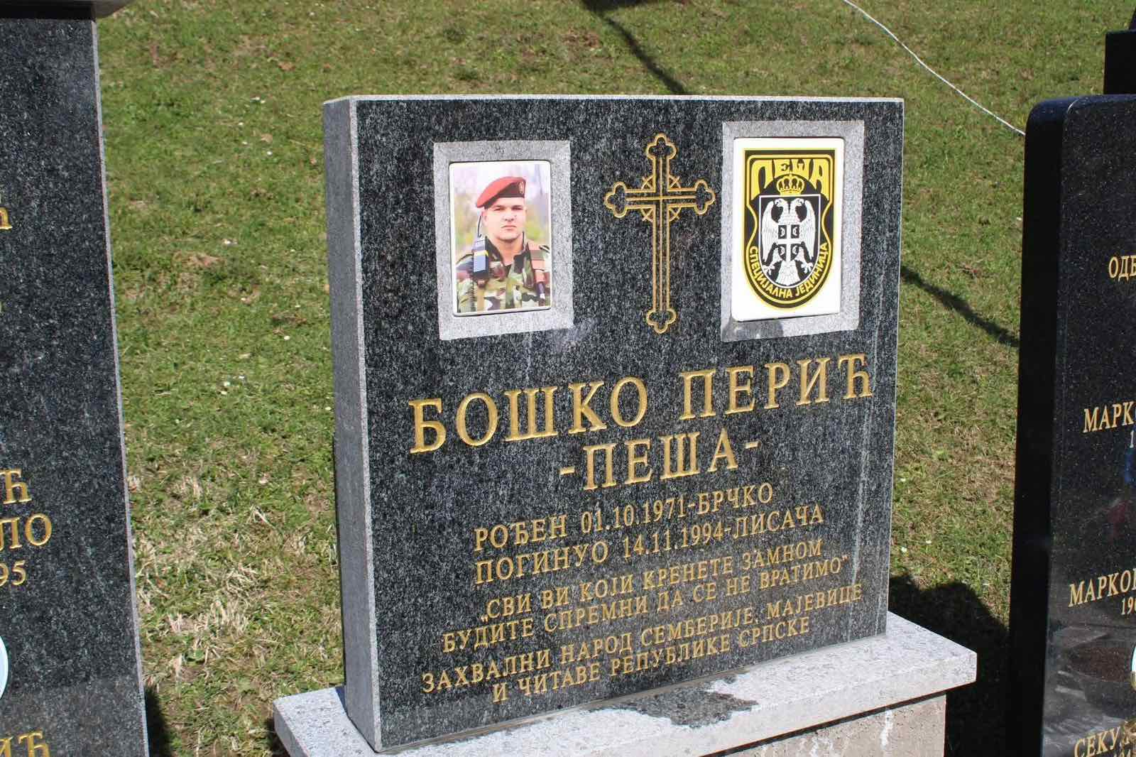 Predsjednik Udruženja veterana specijalne jedinice “Peša” Radivoje Đukić rekao je da je podizanje spomen-ploče Bošku Periću Peši veliki čin koji dodatno neće dozvoliti da njegovo ime bude zabravljeno.