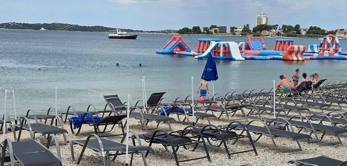 Usred jula, kada bi plaže trebalo da vrve od turista, slika iz Vodica govori sasvim suprotno – ležaljke prazne, more gotovo bez kupača, vodeni park bez djece, a ugostiteljski objekti uz obalu bez gužve.