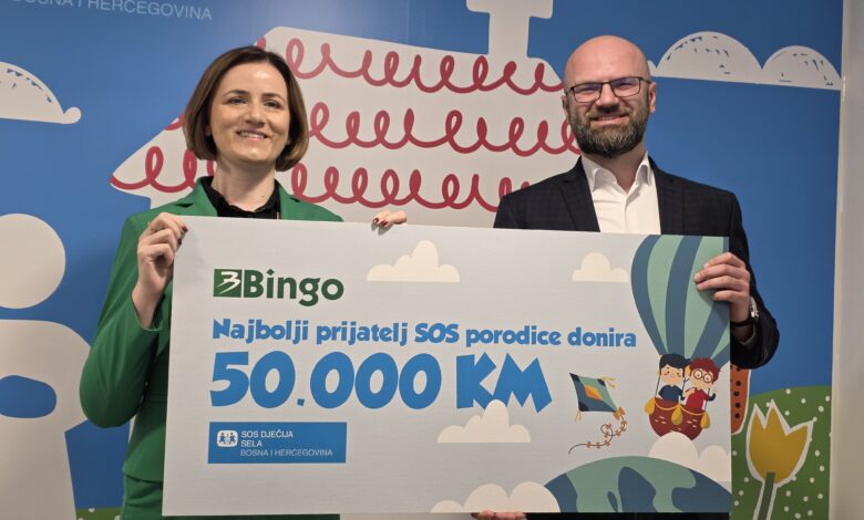 Kompanija Bingo i organizacija SOS Dječija sela u BiH obilježili su trinaest godina uspješne saradnje uručenjem donacije u vrijednosti od 50.000 KM, namijenjene za pokrivanje godišnjih troškova života jedne SOS porodice.