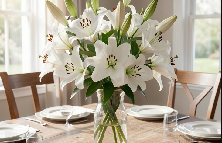 Vaze sa cvijećem čest su detalj na trpezarijskom stolu, ali jedan cvijet ima posebno snažno značenje. Riječ je o bijelom ljiljanu, koji se u feng šuiju smatra simbolom čistoće, rasta i finansijskog napretka.